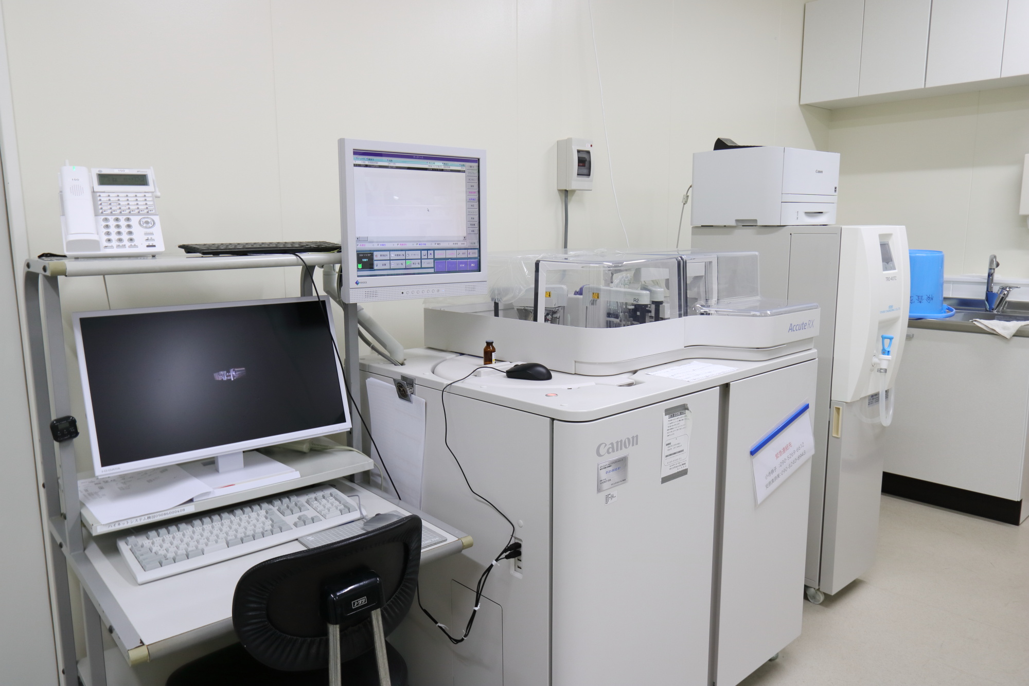 血液や尿に含まれる酵素、糖、脂質、電解質などの成分を自動分析装置で調べて、病気の診断や治療、予防に役立てています。 また、ヘモグロビンA1cという値を測ることで、糖尿病の診断や治療の目安にもなります。