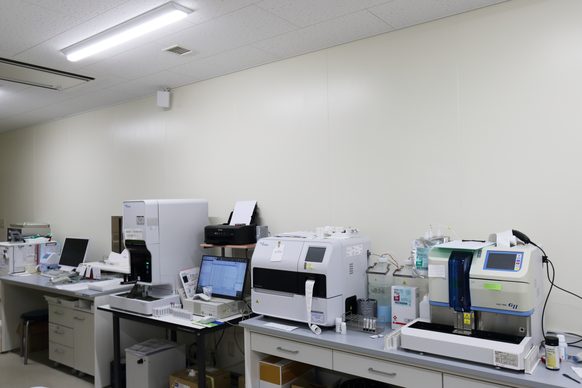検査室では、基本理念として「迅速、正確、向上心、enjoy」をモットーに検体検査、生理検査、輸血検査など行っています。